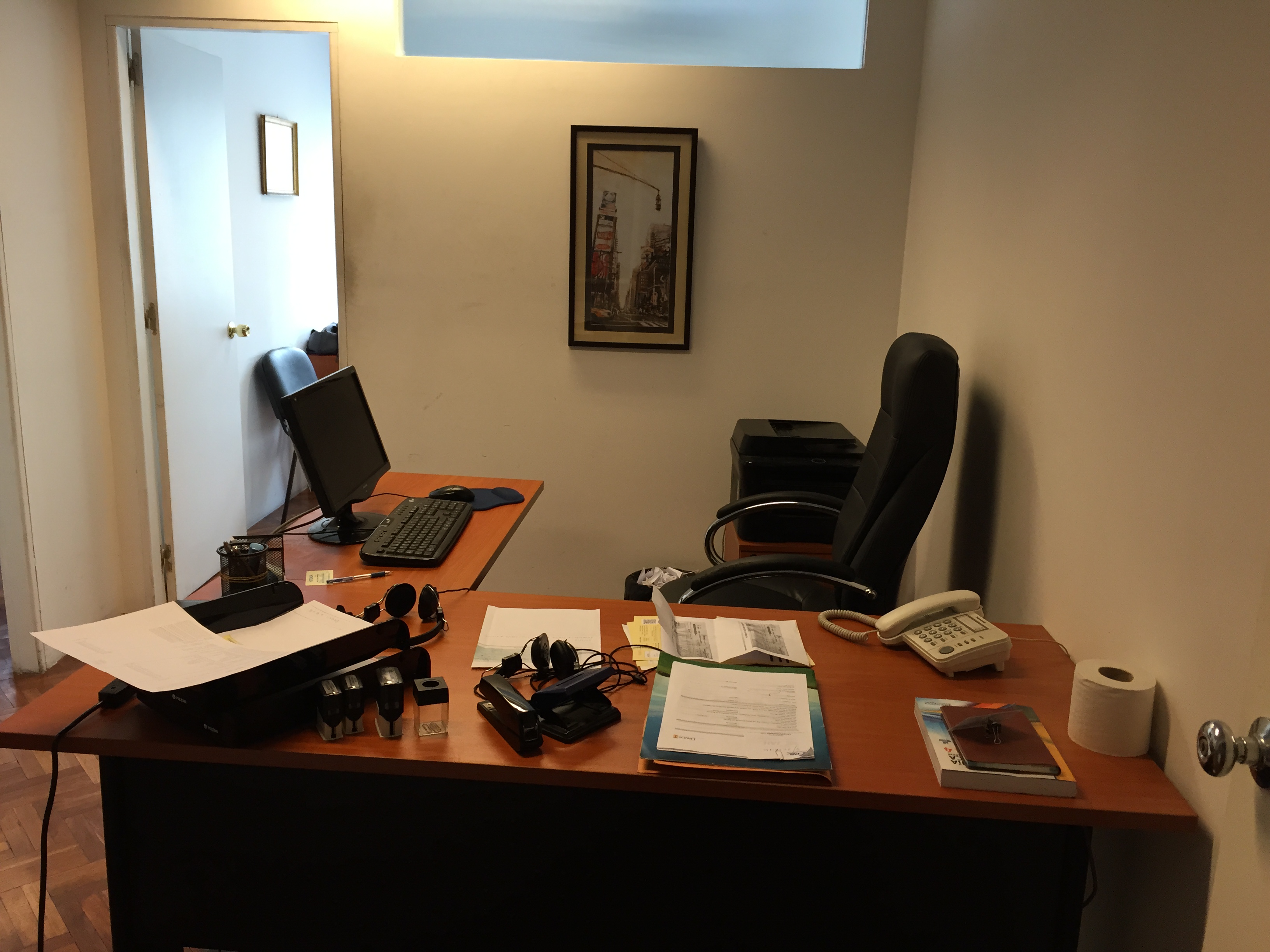 Sobre la calle 25 de Mayo esquina Bartolomé Mitre. Edificio del año 1970 muy buena construcción. Oficina de 56 m2 con garage para 2 autos. Al frente, con recibidor, recepción y dos privados, cocina y baño. Portería y vigilancia las 24 horas. Aire acondicionado en todos los ambientes. Coordinar visita al 094357347.
